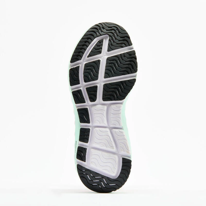 La forme de la semelle est plus large que sur les autres modÚles de la gamme KIPRUN. Cette surface de contact au sol plus importante apporte plus de stabilité des appuis en course par une meilleure répartition des forces, notamment sur longues distances.