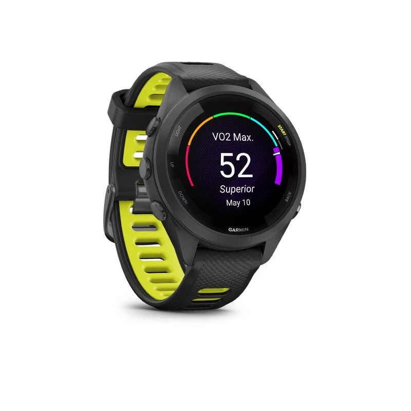 Choisissez entre les boitiers 46mm ou 42mm (Forerunner 265S) et plusieurs options de bracelets en silicone bicolores.