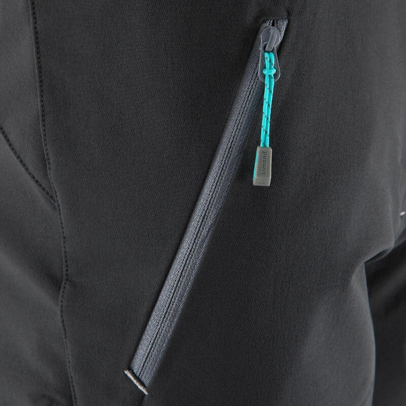 – Soufflets bas de jambe, pour positionner le pantalon sur les chaussures de montagne ou les chaussures de ski (double fermeture : zippée et pression)